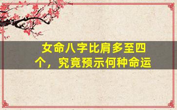 在八字命理学中,比肩(与日主相同的五行)过多确实会对命局产生显著影响,尤其是女命出现四个比肩时,其解读需结合整体命局、阴阳属性、十神配置等综合分析。以下是可能的命理预示及调整建议: