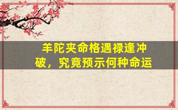在紫微斗数中,“羊陀夹命格遇禄逢冲破”是一个较为复杂的命理组合,其吉凶需要结合具体星曜、宫位和四化来综合判断。以下是这一格局的解析和可能的预示: