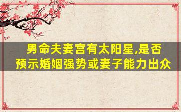 传统理论认为男命太阳在夫妻宫,配偶可能"夺夫权"(社会地位或能力超过丈夫),但现代婚姻更注重平等合作,此象未必负面。