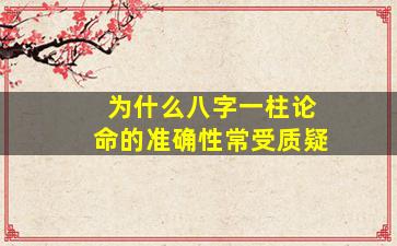 “八字一柱论命”是指仅凭八字中的某一柱(如年柱、月柱、日柱或时柱)来推断命运,这种简化方法在传统命理学中确实常受质疑,主要原因如下: