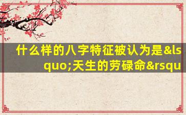 在传统八字命理学中,"劳碌命"通常指一生辛苦奔波、难得清闲的命局特征。这种判断需综合五行生克、十神配置及大运走势,以下是一些常见的相关特征: