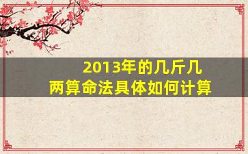 关于“几斤几两算命法”,这是中国民间流传的一种基于出生时间计算命重的方式,俗称“称骨算命”,相传由唐代袁天罡所创。虽然2013年并无特殊变化,但具体计算方法如下: