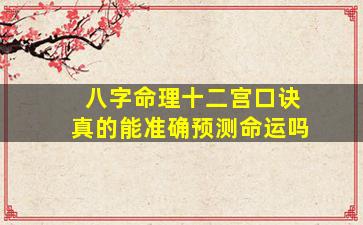 关于八字命理(四柱八字)和十二宫口诀能否准确预测命运的问题,需要从传统文化、统计学、心理学和科学角度综合看待: