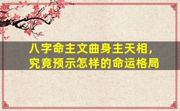 “八字命主文曲身主天相”是紫微斗数中的术语,涉及命宫主星和身宫主星的组合。这一格局需结合具体星曜分布、四化(禄、权、科、忌)及其他辅星来综合分析,但仅从字面可初步解读其象征意义: