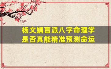 关于杨文娟盲派八字命理学是否能够精准预测命运的问题,需要从传统文化、科学逻辑和认知边界等多个角度理性分析,以下提供几个关键点供参考: