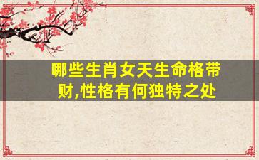 在中国传统文化中,生肖与命理、性格常被关联解读。以下是被认为“天生命格带财”的生肖女及其性格特点,但需注意,这些说法仅为民间文化和命理学的趣味探讨,个人命运更多取决于自身努力与环境因素。