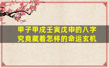 根据您提供的八字“甲子 甲戌 壬寅 戊申”,我们可以从五行生克、十神配置、大运走势等角度进行深度解析,揭示其中的命运玄机: