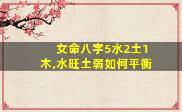 在八字命理中,五行平衡是重要原则。针对女命5水2土1木(水旺土弱)的情况,需通过补土、抑水、顺势流通来调节。以下是具体建议: