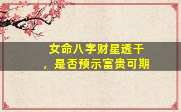 在八字命理中,"财星透干"确实常被视为财富机遇的象征,但富贵与否需结合全局分析,不可单凭此一点论断。以下是具体解析: