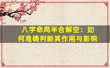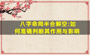在八字命理中,“半合解空”是一个需要结合具体命局细致分析的概念,涉及合局、半合局与空亡之间的相互作用。以下从判断逻辑、作用原理和实际影响三个方面展开说明: