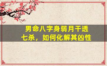 在八字命理中,身弱而七杀透干(尤其是月干)确实代表压力、竞争或健康隐患,需妥善化解以转危为安。以下是系统的化解思路和方法: