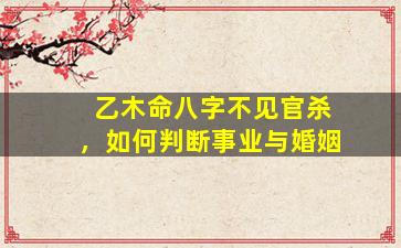 在八字命理中,乙木日主若八字不见官杀(正官、七杀),需通过其他十神组合和五行生克来推断事业与婚姻。以下是具体分析思路: