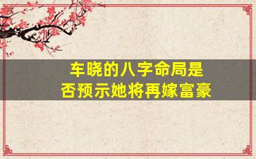 关于车晓的八字命局是否预示她将再嫁富豪的问题,需要从命理学角度综合分析,但需明确以下几点原则: