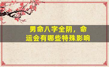 在传统八字命理学中,八字全阴(即天干地支皆属阴)的男命被认为具有独特的能量格局,其命运影响需结合具体八字结构和五行生克综合分析,而非单一属性决定。以下是可能的特殊影响及解读方向:
