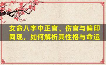 在八字命理中,女命若同时出现正官、伤官与偏印,需结合十神特性和五行生克关系进行综合解析。以下是分点论述: