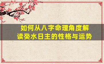 从八字命理的角度来看,癸水日主(出生日的天干为癸)的性格与运势分析需结合五行生克、十神配置以及大运流年等因素。以下是具体的解读框架和要点: