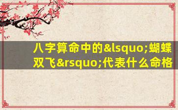 在八字命理中,“蝴蝶双飞”并非传统命学术语,而是民间或现代命理爱好者对某种特殊命局形象的比喻。其具体含义可能因不同流派或解释者而有所差异,但通常与以下两种常见解读相关: