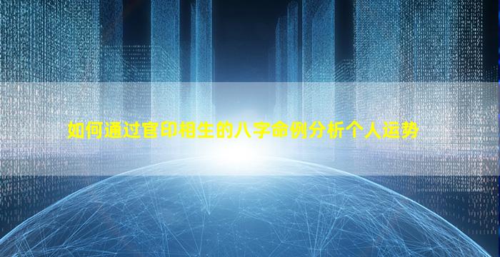 在八字命理学中,官印相生是一种重要的格局组合,通常代表事业稳定、贵人扶持、学业有成等吉利征兆。要分析此类命例的个人运势,需系统性地拆解八字中的五行生克关系。以下是具体分析步骤和要点: