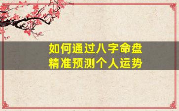 通过八字命盘预测个人运势是中国传统命理学的核心内容,其理论基础是阴阳五行、天干地支和生克制化等哲学体系。以下是系统化的预测方法和关键步骤,需结合理论分析与实践经验: