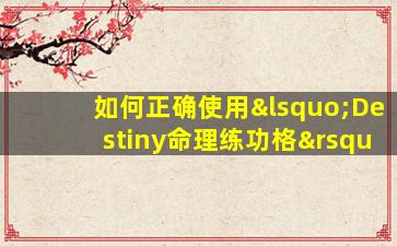 关于“Destiny命理练功格”(或类似命理工具)的使用方法,目前公开资料中并未有权威统一的说明,此类工具常见于部分命理或玄学体系,可能涉及八字、紫微斗数、风水等理论的实践应用。以下是一般性建议,供参考: