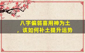 根据八字命理,若八字偏弱且喜用神为土,意味着土元素能增强你的五行平衡,提升整体运势。以下是一些补土的具体建议,涵盖生活各方面: