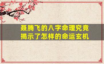 关于聂腾飞的八字命理分析,需明确几点前提: