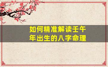 解读八字命理需要结合天干地支、五行生克、十神配置及大运流年等多方面因素。壬午年出生者(如2002年、1942年等),其八字年柱为壬午,但完整的八字还需月、日、时的干支(需具体出生时间)。以下是针对壬午年柱的命理分析框架,供参考: