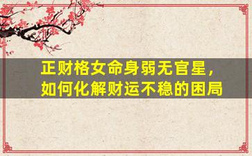 在八字命理中,"正财格女命身弱无官星"确实可能导致财运不稳、缺乏贵人或事业助力的情况。这类命局的核心矛盾在于财旺身弱难以担财,且缺乏官星(事业星)的引导和稳定作用。以下从命理角度提出系统性化解方案: