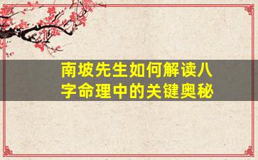 关于“南坡先生”在八字命理中的解读方法,目前公开资料中并无明确记载这一特定人物或学派,可能为民间隐士或网络化名。不过,结合传统命理学和江湖流派的特点,可以尝试从以下几个角度探讨八字命理中的关键奥秘,并假设“南坡先生”可能关注的核心理念: