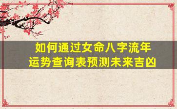 通过女命八字流年运势查询表预测未来吉凶,是传统命理学中的一种常见方法,其核心在于分析八字命局与大运、流年的相互作用。以下是具体步骤和要点: