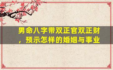 在八字命理中,男命出现“双正官双正财”的组合(即天干或地支中同时出现两个正官星和两个正财星),需结合具体八字结构、五行生克、十神位置等因素综合分析,但通常有以下基本特征: