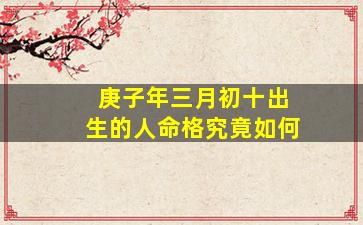 根据中国传统命理学(四柱八字),一个人的命格需结合出生年、月、日、时的天干地支(共八个字)综合推算。您提到的“庚子年三月初十”仅提供年、月、日三柱信息,需补充具体出生时辰才能完整排盘。现基于现有信息简要分析: