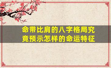 “命带比肩”是八字命理中的一个术语,指八字天干中出现与日主相同的五行(如日干为甲木,其他天干再出现甲木,即为比肩)。比肩代表竞争、独立、同辈助力或阻力,其具体影响需结合八字整体格局、旺衰、喜忌等综合分析。以下是常见的命运特征和解读方向: