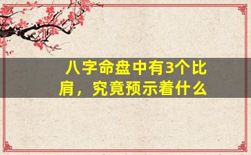 3个比肩需看具体位置(如月柱、时柱)和五行生克。若命局平衡,表现为人脉广、执行力强;若失衡,则需通过心态调整或五行调和(如用官杀制比、食伤泄秀)来改善。建议结合完整八字及十神分布深入分析。