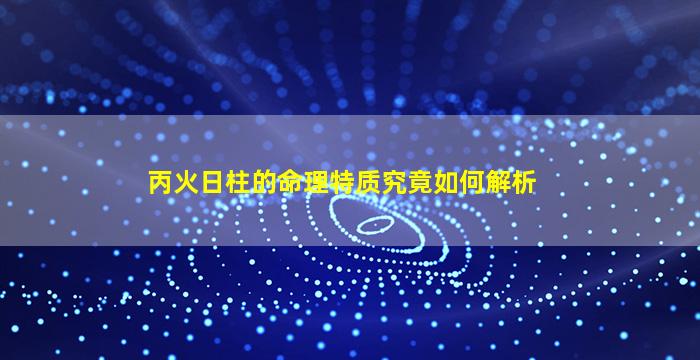丙火日柱在八字命理中属于阳火,象征太阳之光,具有热烈、光明、积极的特质。以下从多个维度解析其命理特质: