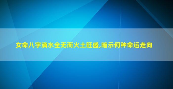 在八字命理中,"女命滴水全无而火土旺盛"指的是命局中五行水元素极度缺失,而火、土能量占据主导的情况。这种特殊格局会从性格、健康、事业、情感等多方面影响命运走向,以下是具体分析: