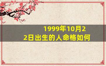 根据中国传统命理学(八字算命),一个人的命格由出生年、月、日、时的天干地支(共八个字)组成,结合五行、十神、大运等分析。由于您提供的日期缺少具体出生时间(时辰),以下为1999年10月22日的基本命理分析,供参考: