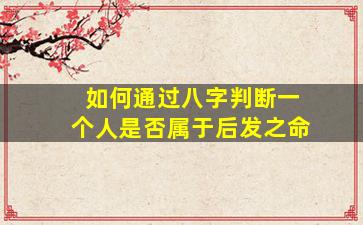 通过八字判断一个人是否属于“后发之命”(即早年运势平淡,中晚年才逐渐发达),需结合命局格局、五行生克、大运走势等多方面综合分析。以下是具体方法和关键要点: