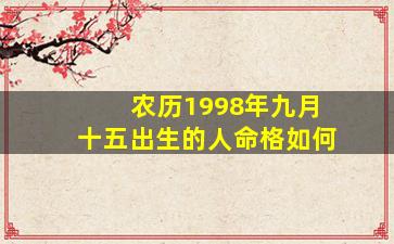 根据中国传统命理学(八字、五行等),一个人的命格分析需要结合出生年、月、日、时的天干地支(共八个字,故称“八字”)来综合判断。由于您提供的日期是农历1998年九月十五,但未注明具体出生时间(时辰),以下为基于年份和日期的初步推算,供参考: