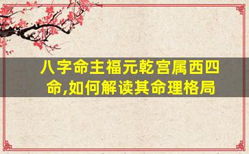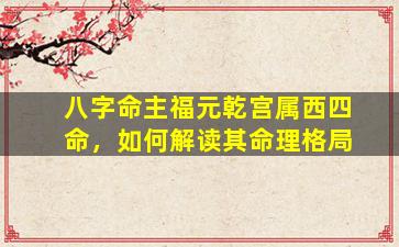 “八字命主福元乾宫属西四命”是传统风水命理中的一种分类方式,结合了八卦方位与八字命理的理论。以下是对这一命理格局的解读: