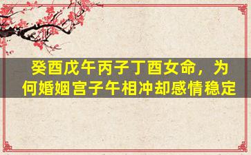 在八字命理中,婚姻宫(日支)的子午相冲确实常被视为感情波动的信号,但实际婚姻稳定与否需结合全局分析。针对此女命(癸酉、戊午、丙子、丁酉),婚姻稳定的原因可从以下几点解读: