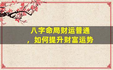 根据命理学的观点,八字命局中的财运虽然有一定先天影响,但通过后天调整仍可改善财富运势。以下是一些结合传统智慧和现代思维的方法,供参考: