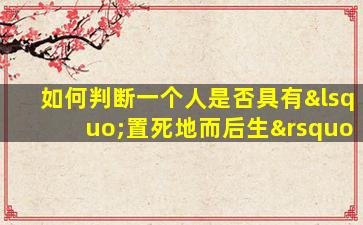 判断一个人是否具有“置死地而后生”的特殊命格(或称逆境重生、绝处逢生的潜能),需要结合命理学、心理学、现实表现等多维度综合分析。以下是一些常见的判断方向和方法: