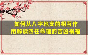 从八字地支的相互作用解读四柱命理的吉凶祸福,需结合地支的五行生克、刑冲破害合化等关系,综合分析其对命局的影响。以下是系统的解读方法: