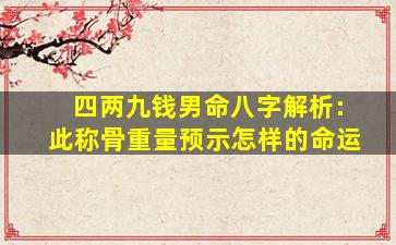 根据传统命理学中的“称骨算命”法(源自唐代袁天罡的称骨歌),四两九钱的男命属于中等偏上的命格。以下是对这一命重的解析,供参考: