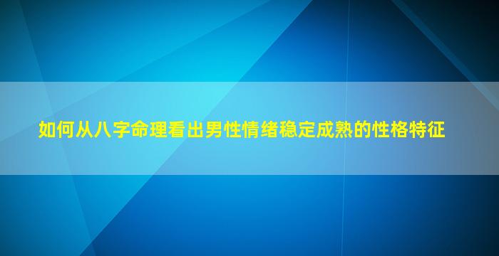 从八字命理分析男性情绪稳定成熟的性格特征,需结合五行生克、十神配置及格局平衡等多维度综合判断。以下是关键分析要点: