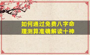 通过免费八字命理测算准确解读十神,需要系统性地分析八字中的天干地支组合及其相互作用。以下为具体步骤和要点: