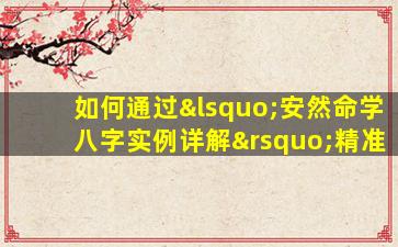 “安然命学八字实例详解”是一种基于传统八字命理的现代解读方法,通过分析个人出生时的年、月、日、时四柱(共八个字)来推算命运趋势。以下是一个分步指南,帮助理解如何通过这种方法进行精准推算: