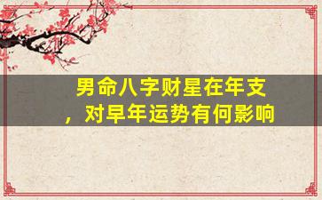 在八字命理中,财星(正财、偏财)代表男性的财富、物质资源及异性缘,其位置和强弱对运势有重要影响。若男命的财星落在年支(即八字四柱中的年柱地支),对早年运势的影响可从以下几个方面分析: