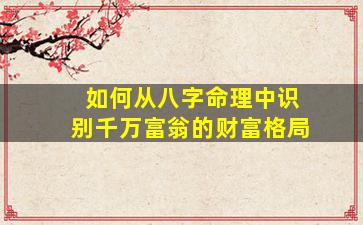 在八字命理中,判断一个人是否具备千万富翁级别的财富格局,需要综合分析命局中的财星、官杀、印绶、食伤及日主强弱等要素的配合。以下是识别高财富格局的关键要点:
